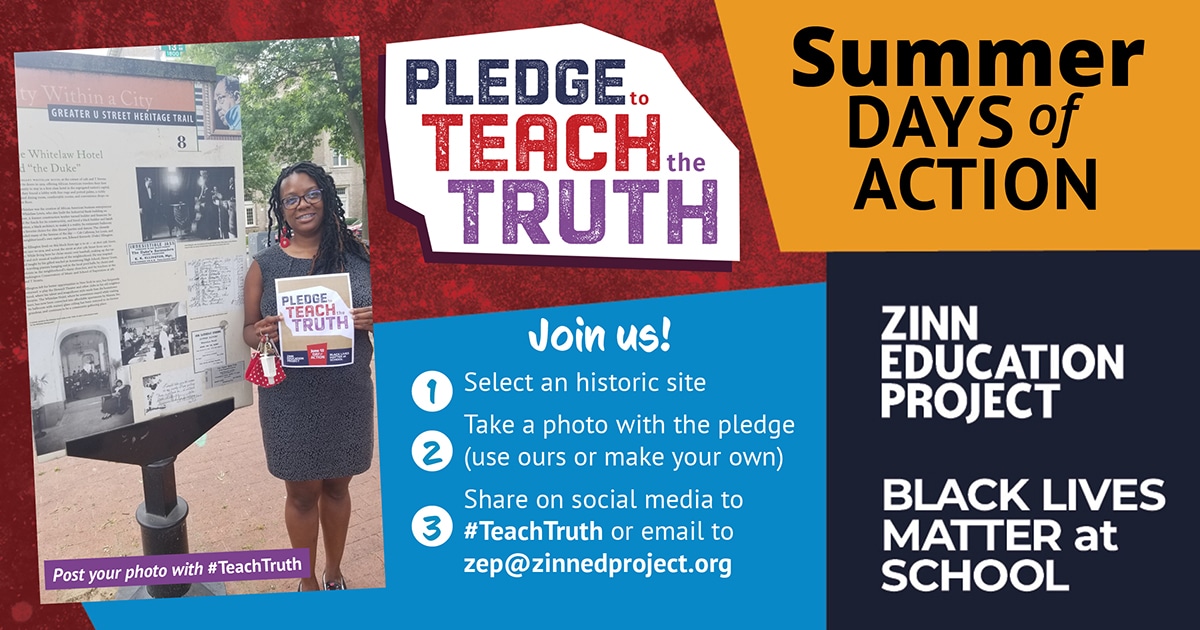 Teachers are invited to make public their pledge to #TeachTruth at historic sites throughout the summer and during the August 27 - 29 Days of Action.