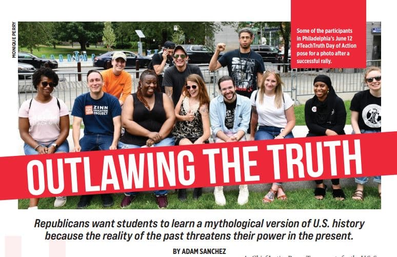 The August/September issue of The Progressive Magazine features a photo spread of the June 12 Pledge to Teach Truth events across the country and an article by high school teacher, Adam Sanchez, "Outlawing the Truth."