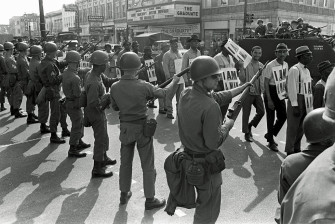 Urban uprisings offer a convenient entry point for discussing the transition from civil rights to Black Power, but jumping immediately from one to the other misses Black Power’s southern roots. “Out of the Shadows,” the first episode of Black America since MLK: And Still I Rise (2016), and “The Time Has Come, 1964–1966,” the seventh installment of Eyes on the Prize, explain the genesis of Black Power in SNCC’s Lowndes County, Alabama, organizing project. The Black America episode also introduces the Oakland, California, Black Panther Party for Self Defense (BPP), the most iconic organization of the Black Power era.
