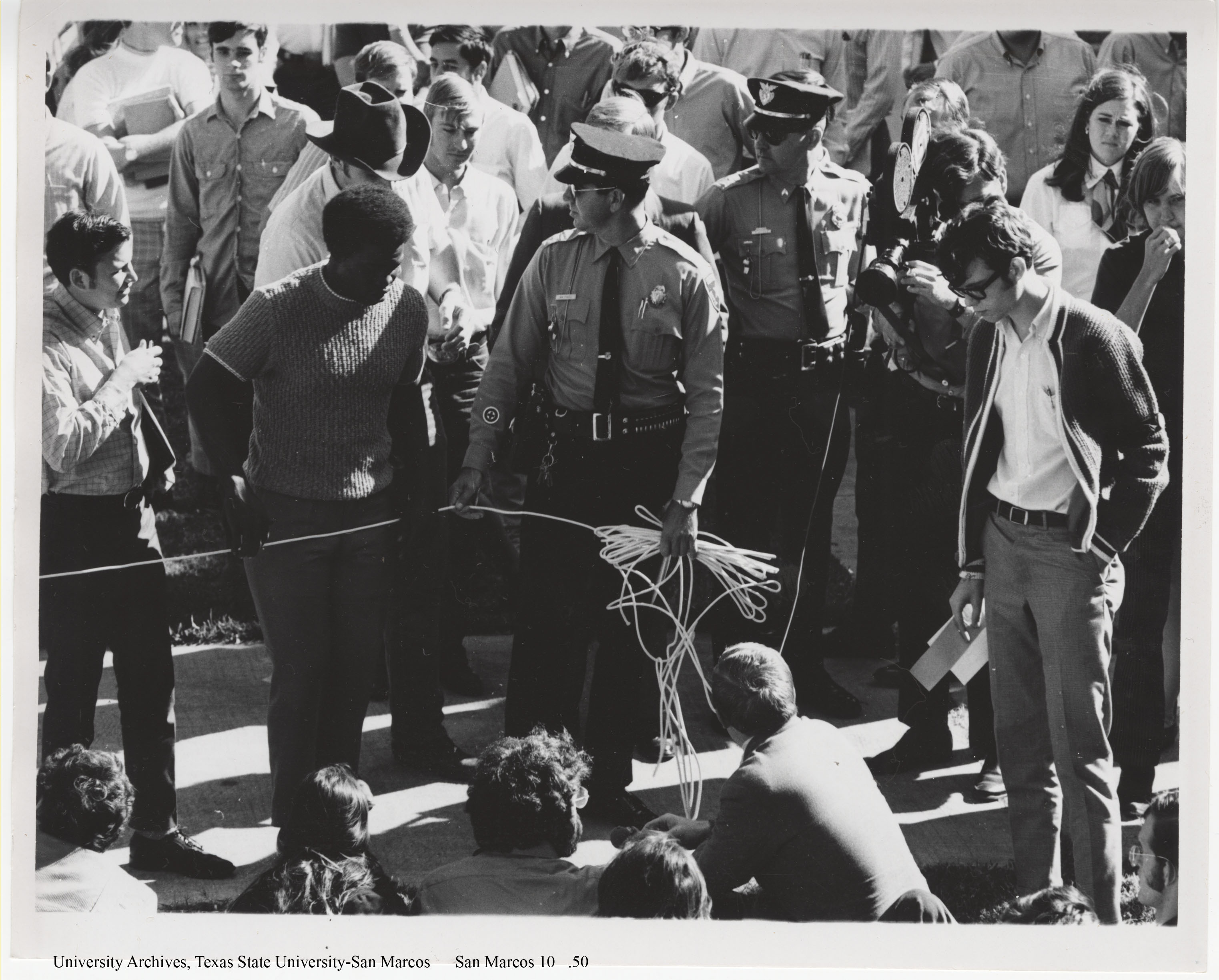 A group of students were suspended at Southwest Texas State University for peacefully protesting the Vietnam War.