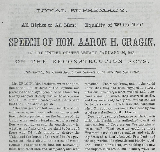 U.S. Senator Cragin spoke against delaying the expansion of suffrage. He countered the statements by white Democrats, saying the real reason they were opposed to Black suffrage was because they could not control the votes.